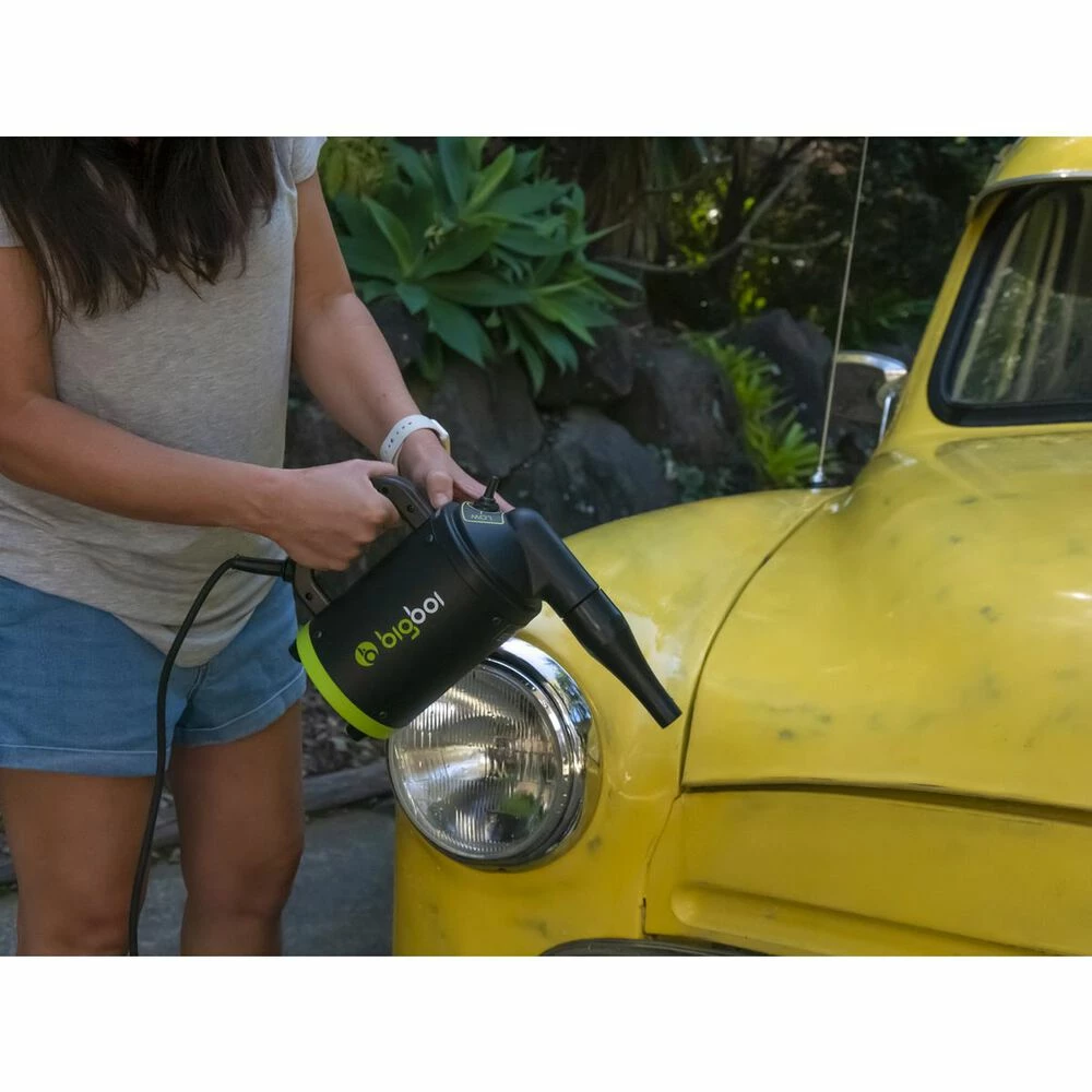 Buddi Jnr puts out one stage wind speed setting up to 220km/h, while BigBoi Temperature Technology (BTT) – set 25Β°C above ambient. Buddi Jnr uses filtered air which is safer on paintwork than using a leaf blower or pet dryer. Use Buddi Jnr on paint, glass, wheels, chrome, fabric convertible roofs. Buddi Jnr is supplied with 2 interchangeable nozzles, oam air filter (washable & reusable).