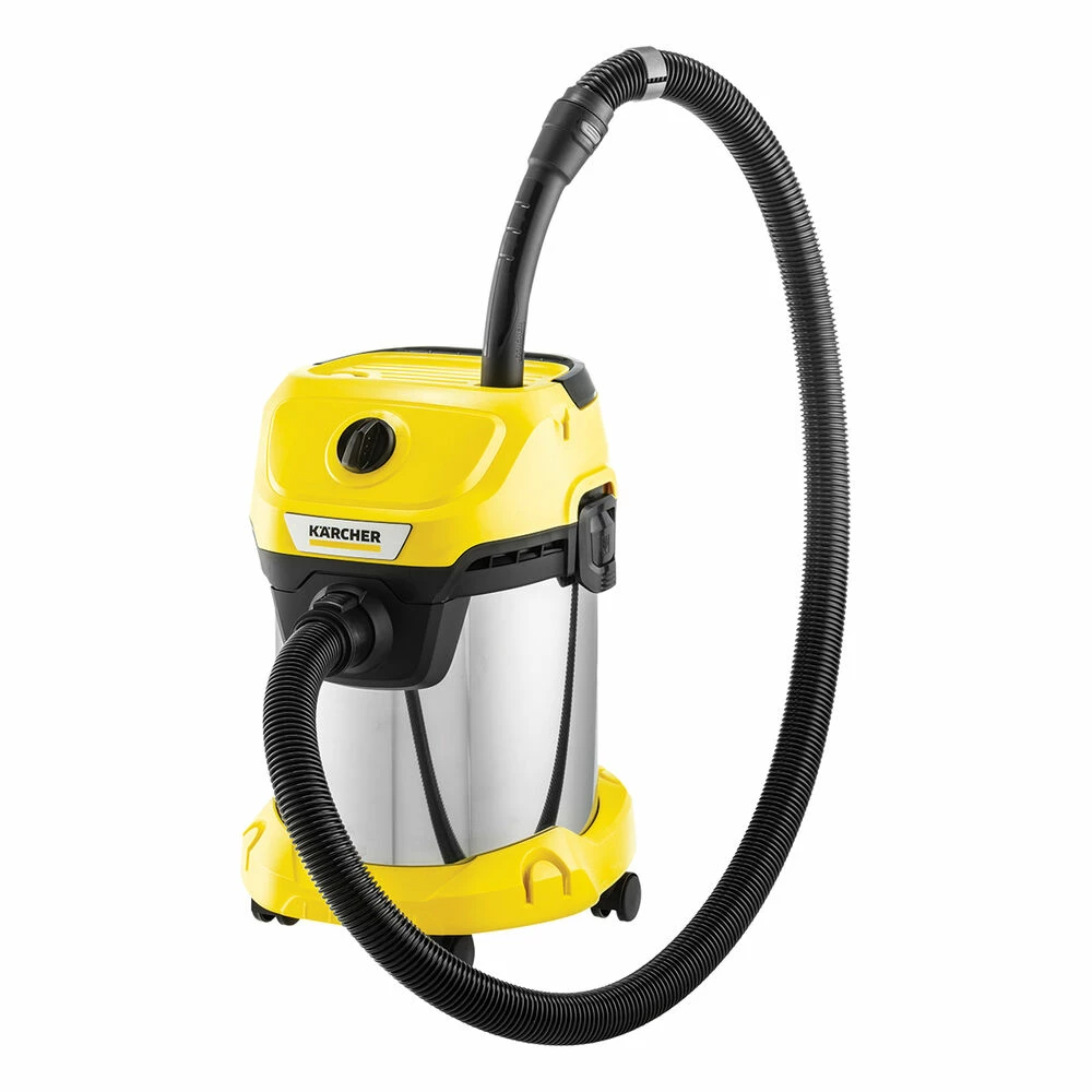 The Karcher WD3S wet and dry vacuum cleaner is a powerful cleaner that is also energy efficient. Equipped with a robust and corrosion-free 19 litre stainless steel container, the WD3S also has a new and improved cartridge filter for easy installation and replacement with no clip required. A newly developed suction hose and the innovative clip-on floor nozzle with two in one functionality allow the WD3S to consistently and reliably remove all types of dirt. Accessories can be directly attached to the suction hose with the development of a removable handle. The practical parking position allows convenient intermediate parking of the suction pipe and floor nozzle during work breaks. The WD3S also has a handy blowing function, ergonomic carrying handle, as well as practical cable and accessory storage.
