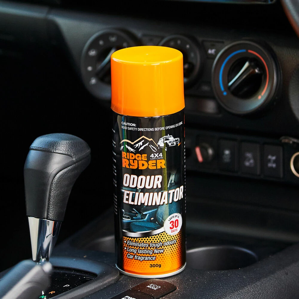 Ridge Ryder Odor Eliminator is formulated to neutralize pretty much any odours, it can tackle anything from the mess your pet left and that iced coffee you spilled in your lap – to stale cigarette smoke, and whatever it is thatβs growing under your seat. It is safe for use on most cloth, carpet, headliners, vinyl and other soft interior surfaces, and will leave your vehicle smelling fresh and clean for up to thirty days.